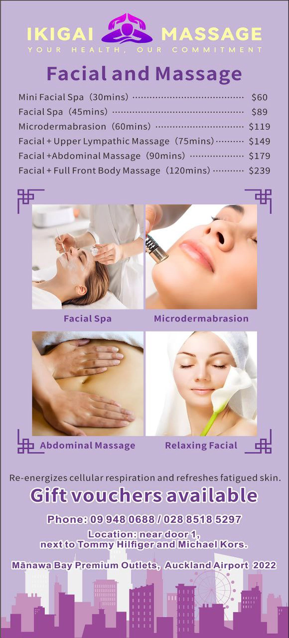 Located at the Mānawa Bay Premium Outlet near Auckland Airport, we provide a sanctuary where your health is our commitment. Ikigai Massage invites you to discover the art of balance and renewal.